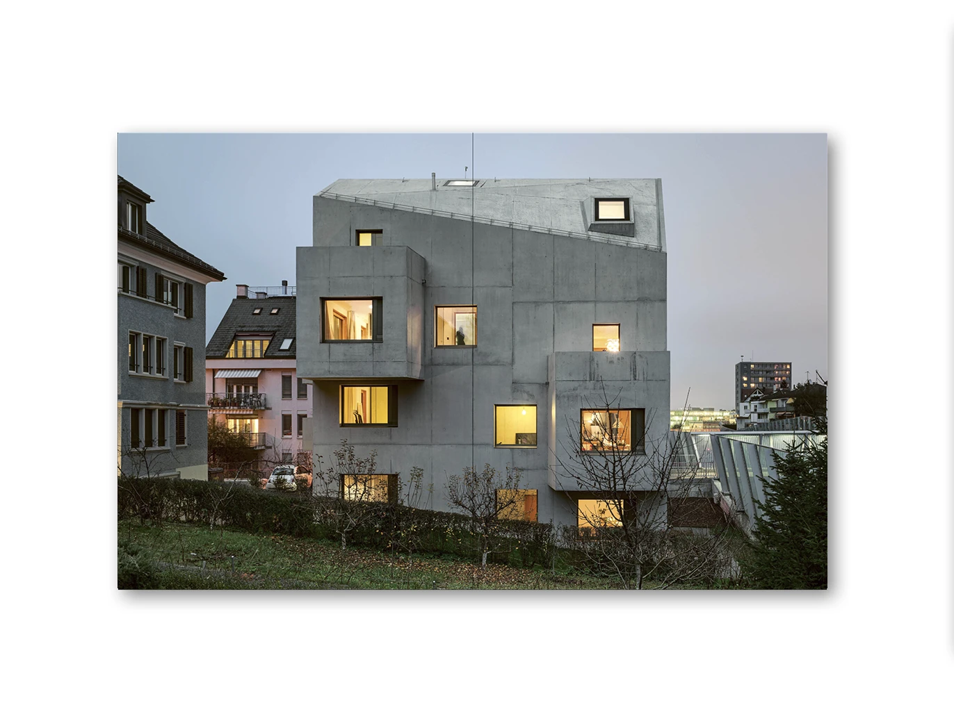 The sculptural, monolithic spiral staircase of the Zurich Tanzwerk or the residential buildings in Zurich-Oerlikon and Erlenbach – all monoliths with sculptured roofs are based on a pragmatic, poetic approach. Spillmann and Echsle’s impressive powers of observation often allow them to re-stage the given. As in the Google interior fit-out or the Noerd commercial building, they celebrate the beauty of raw concrete and openly display technical installations over the exposed structure.
