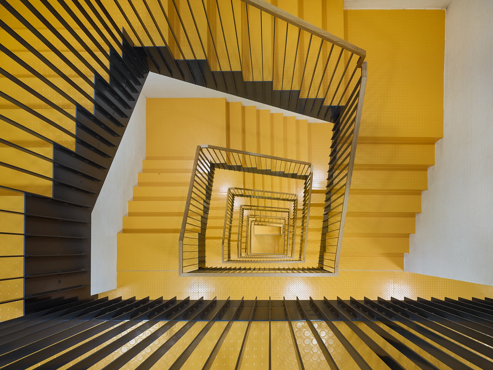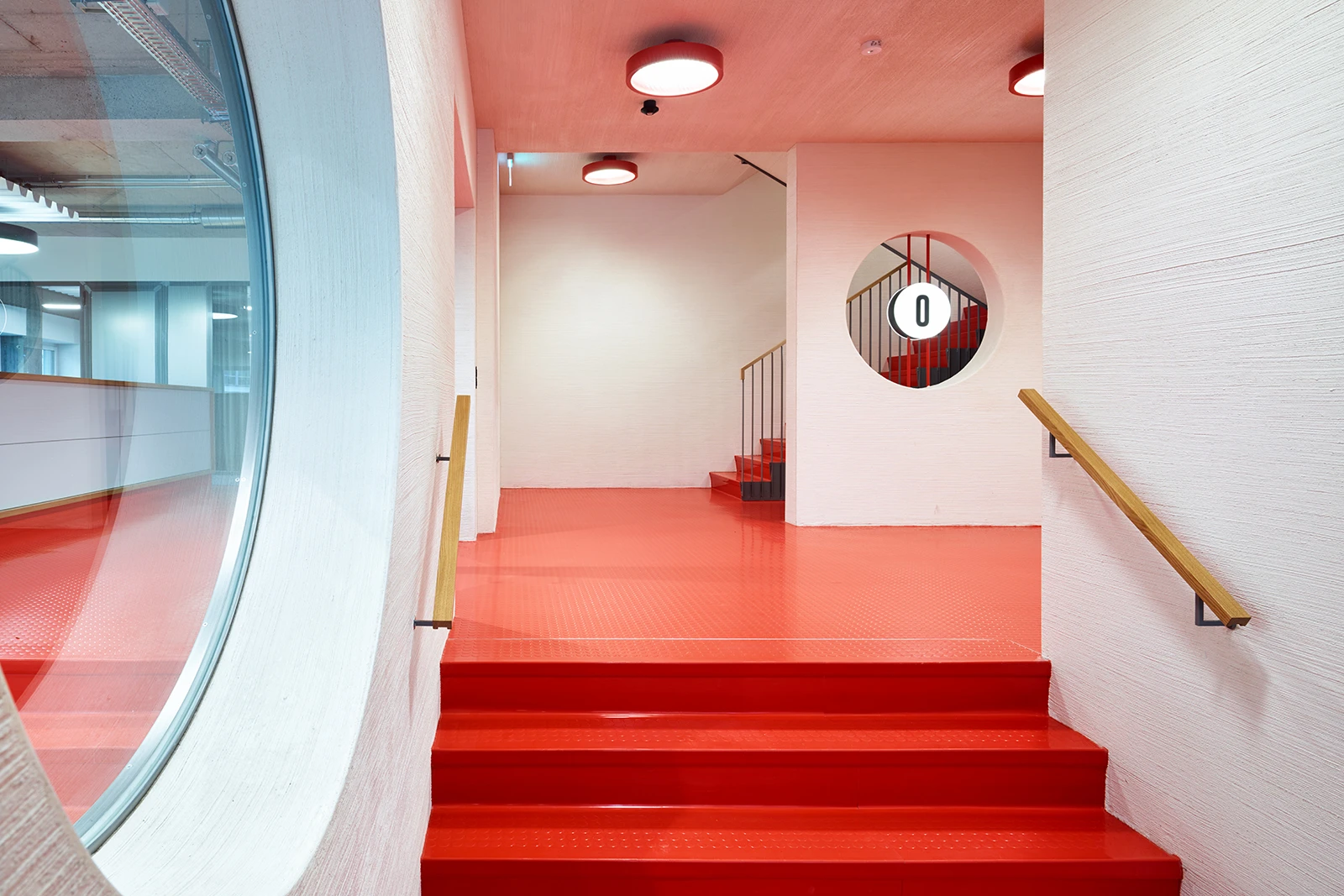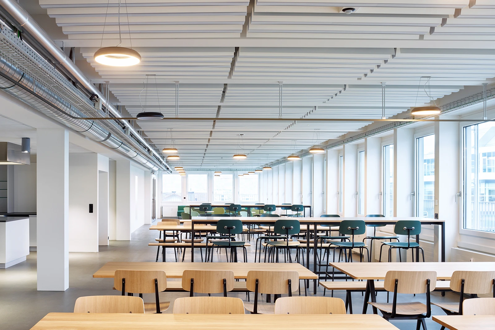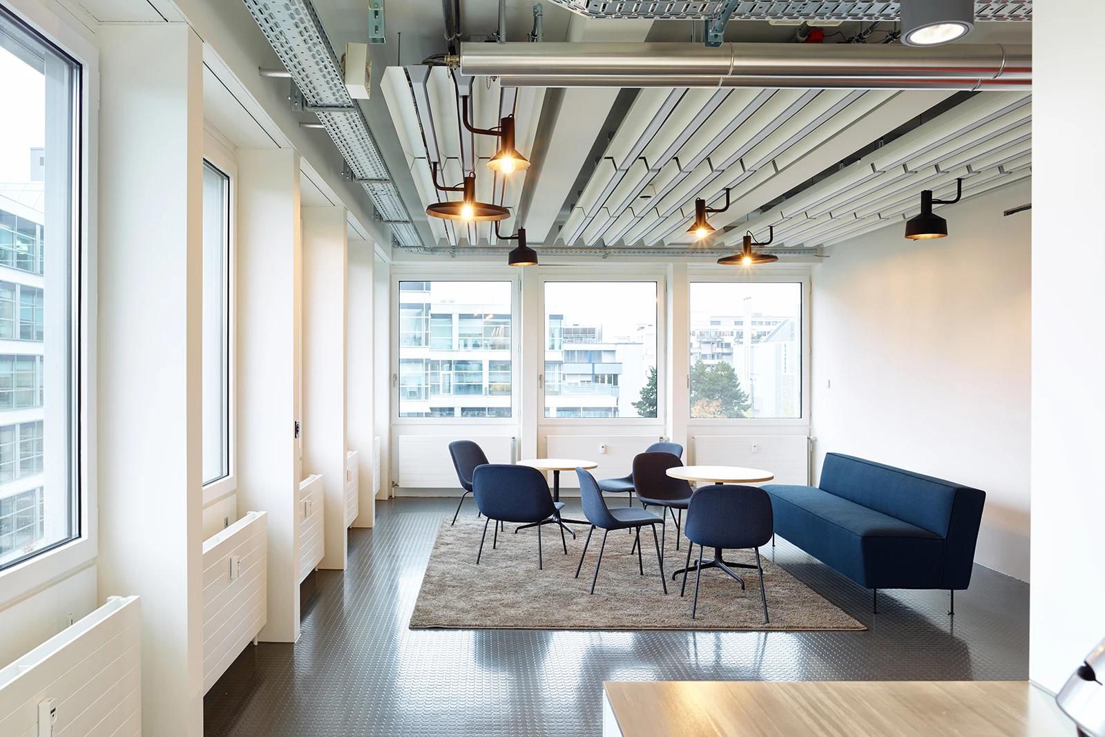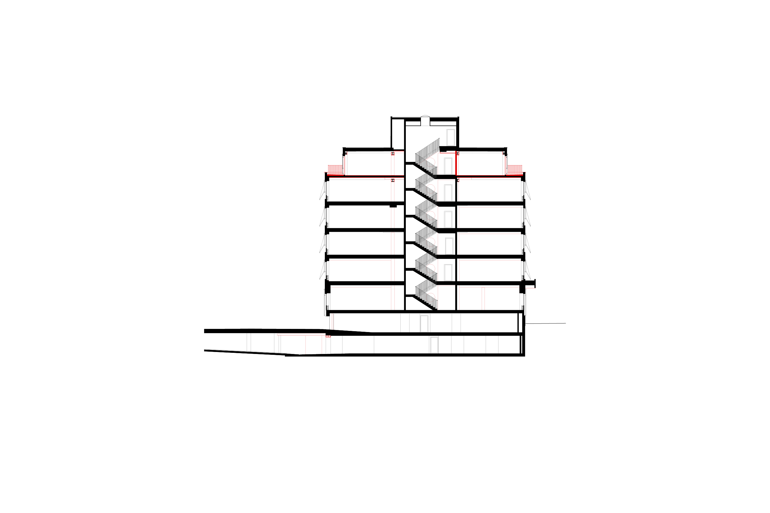 To accommodate creative professionals, the strategy for this adaptive re-use into an office and studio framework named "Creative Hub" repairs the existing spaces by stripping away double floors, suspended ceilings, and partition walls. The renovation results in a highly refined shell that maintains a perceptible stylistic relationship to its former identity as an industrial repository. It has an updated material palette along with new access points, sanitary facilities, vertical circulation zones, rooftop meeting spaces, and a dedicated emergency exit to Flurstrasse. The building's facade remains largely untouched, save for subtle enhancements such as the introduction of textile sun blinds.