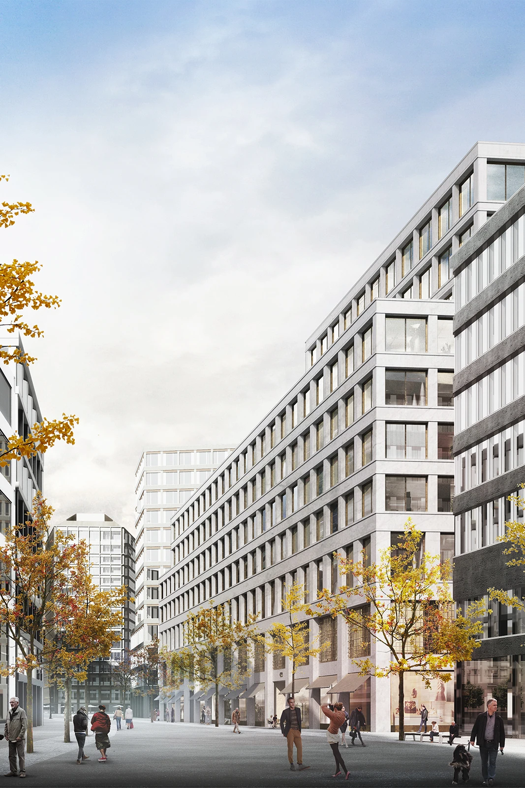 As the final building in the Europaallee development, the building has an essential role: to concisely and precisely formulate an architectural connection to the rest of the development, incorporating the strength of the urban space that is then transferred into an inherent whole. The position of the building reacts to the surrounding environment with clearly defined volumetric recesses.