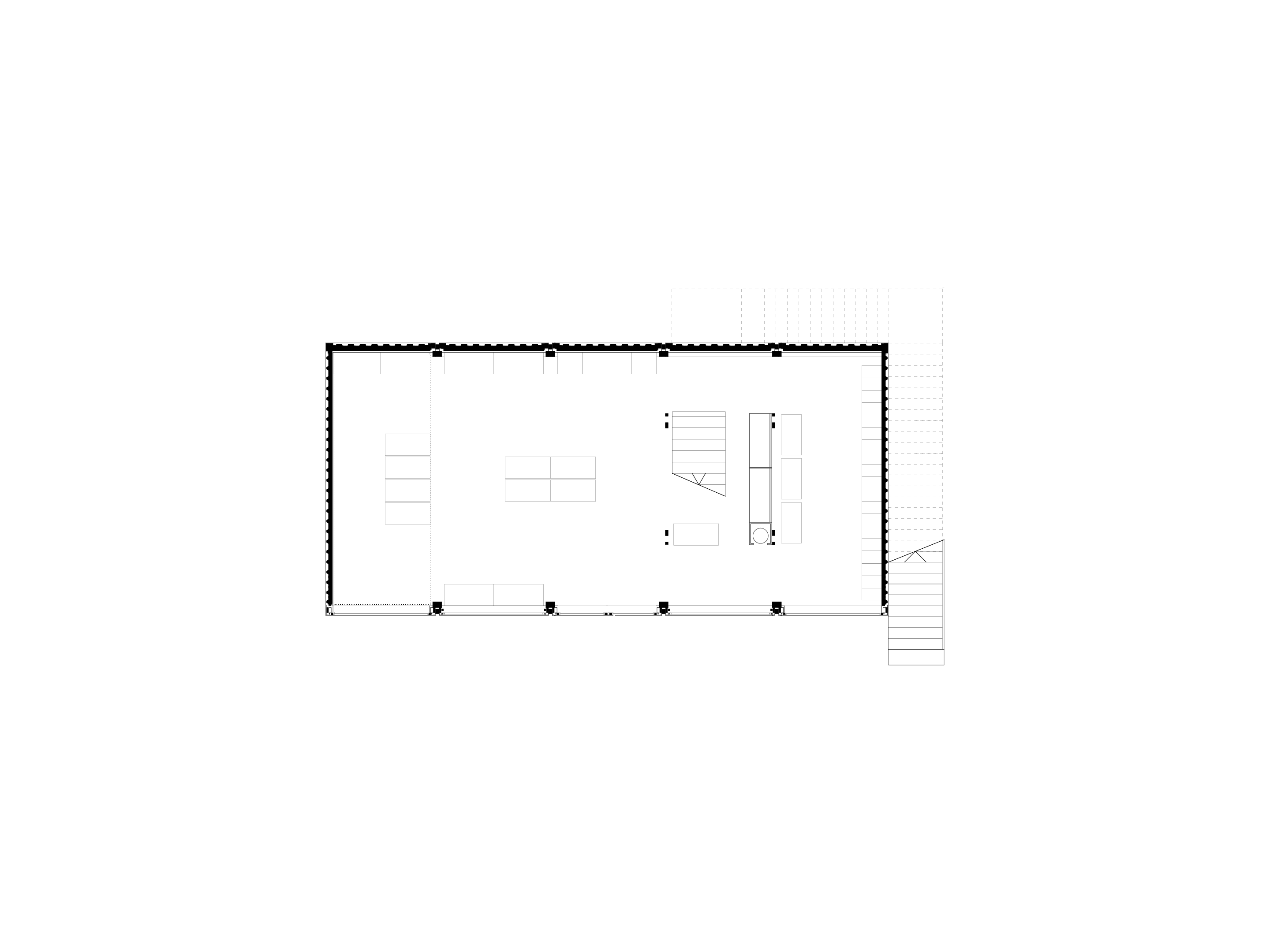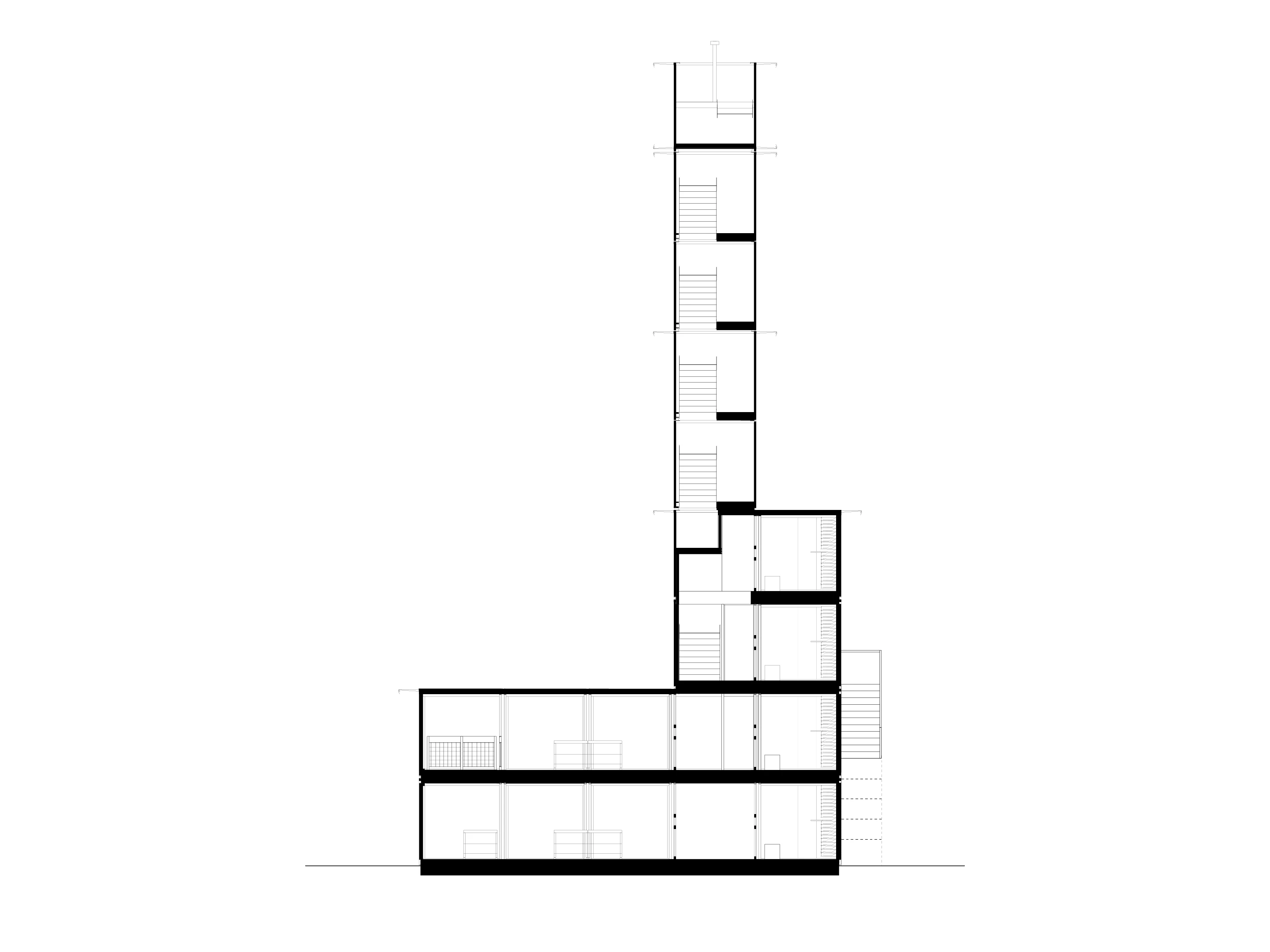 By detaching longitudinal walls and ceilings, a generous, open sales area is constructed over the first four storeys, transforming the containers into a single thermal and fire-safety unit, inside which the various products are presented, sold and stored.