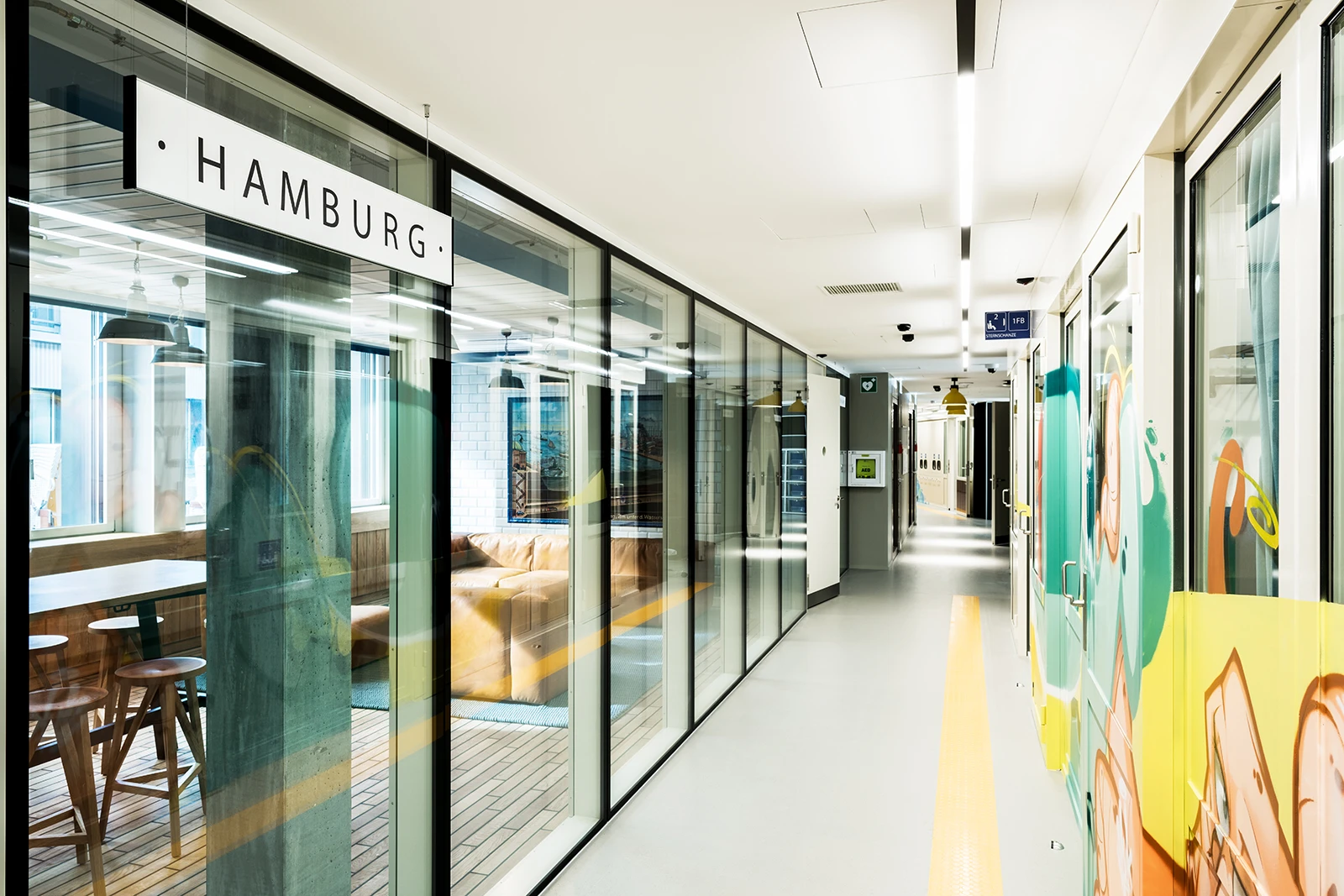 The various departments are each assigned to a European city. They are provided with an individual material, color, and furnishing concept that is atmospherically attuned to the respective city.