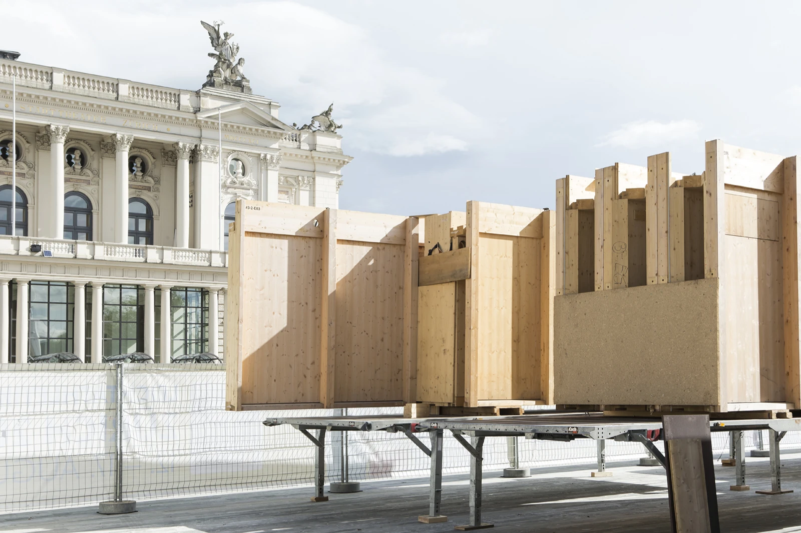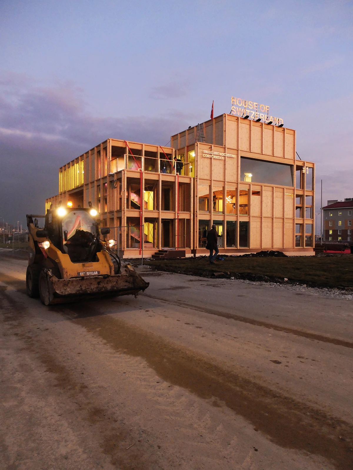 The House of Switzerland is a mobile building that serves a diplomatic function representing Switzerland’s professional sporting interests, traveling to various international locations. Its wooden construction displays a concurrence between traditional carpentry and state of the art timber engineering. The largely standardized construction consists of 193 elements, manifesting a clear, tectonic expression.
