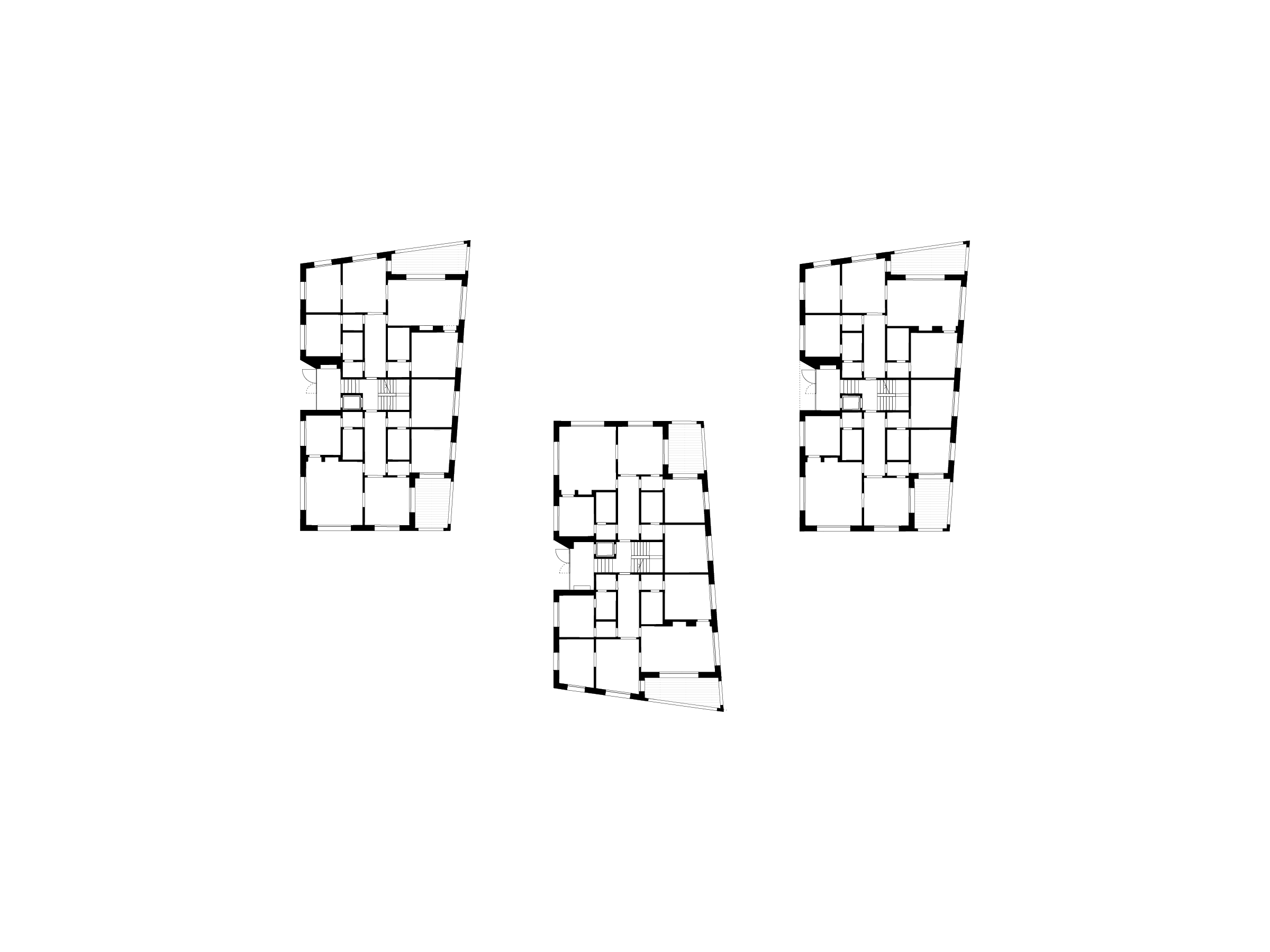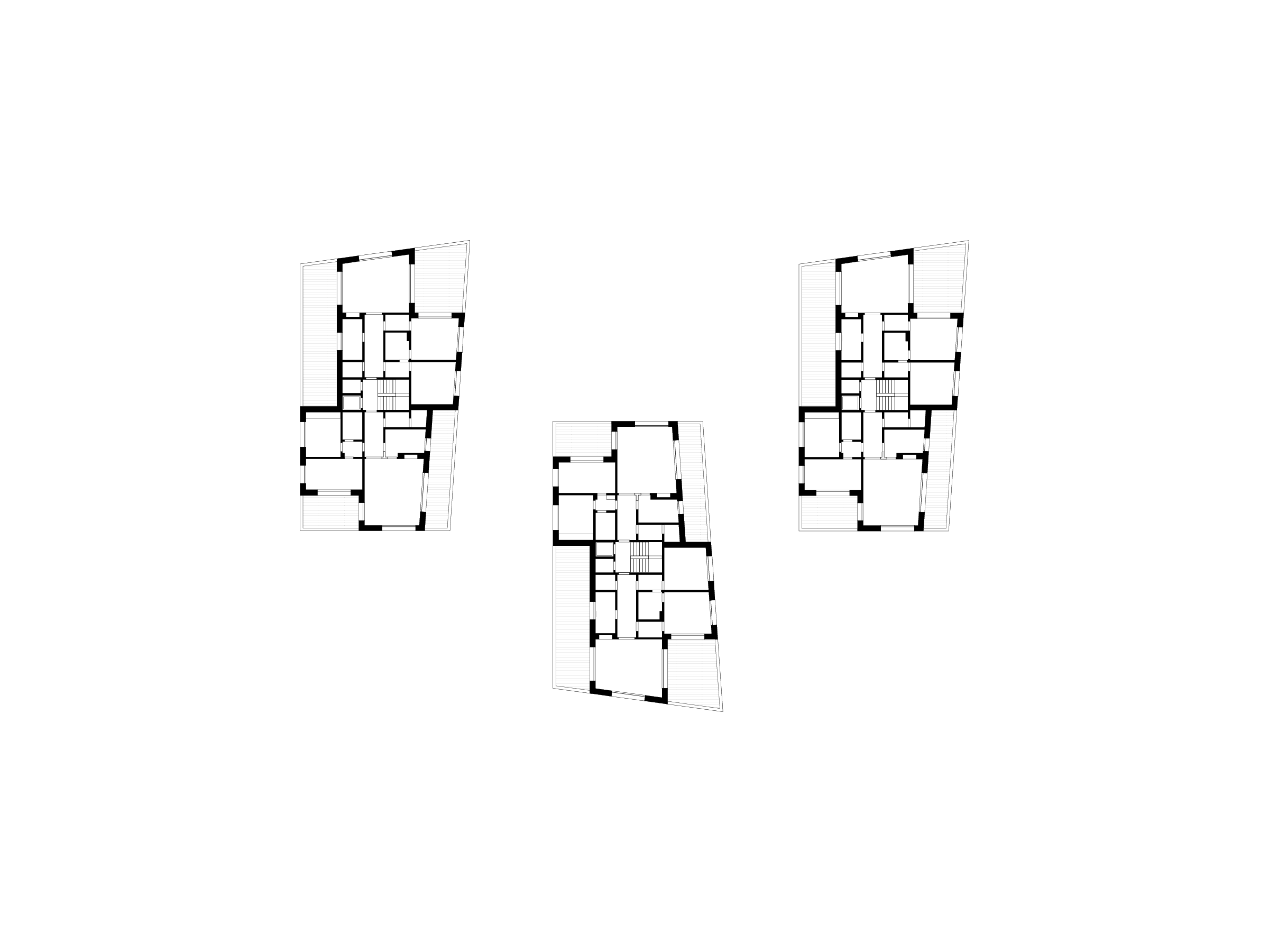 The location of a suburban housing development is situated between a new residential project and an agricultural area. It plays a critical role in shaping the future of housing in this area where the main focus is placed on preserving the connection to the neighboring rural landscape. This project was conceived in response to an invitation for a design competition and was honored with the first prize. The project was applauded for its attention to the dimensions of the property, which consists of three distinct building volumes. The strategic placement of these volumes ensures maximal sun exposure and affords the best views of the surrounding landscape.