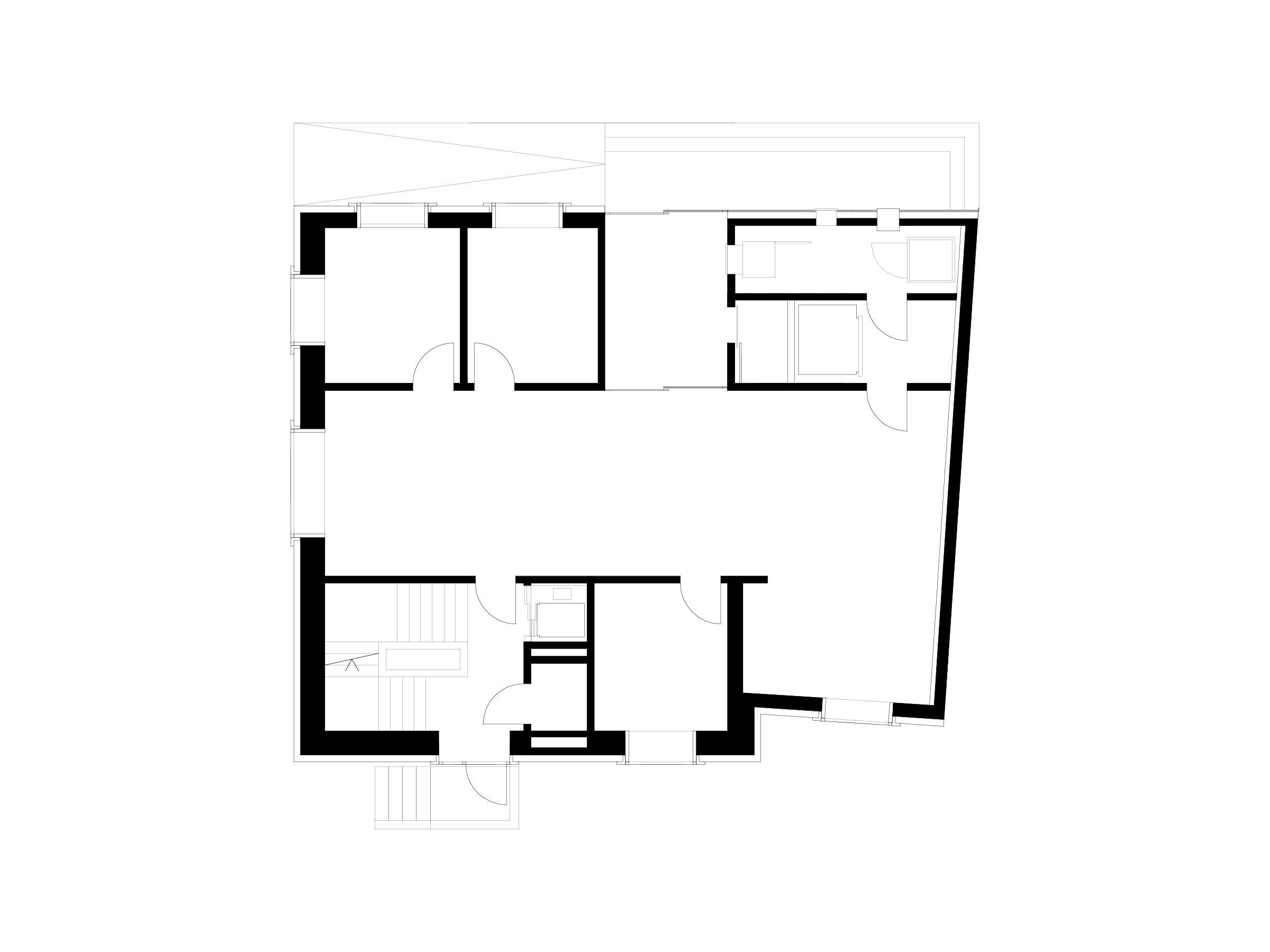 The interior of the predetermined volume navigates through the building's original dimensions, segmenting the space into nine roughly equal sections, suggesting a sophisticated, layered layout. This playful organization generates a combination of smaller and, by combining several rooms, to form more expansive areas and generous vertical spaces. These central voids allow for spatial references throughout and create the necessary transparency and additional space in the otherwise compact building. Through two new roof structures, the attic is extended into a new, exciting space that provides picturesque views of the Albis Hill.