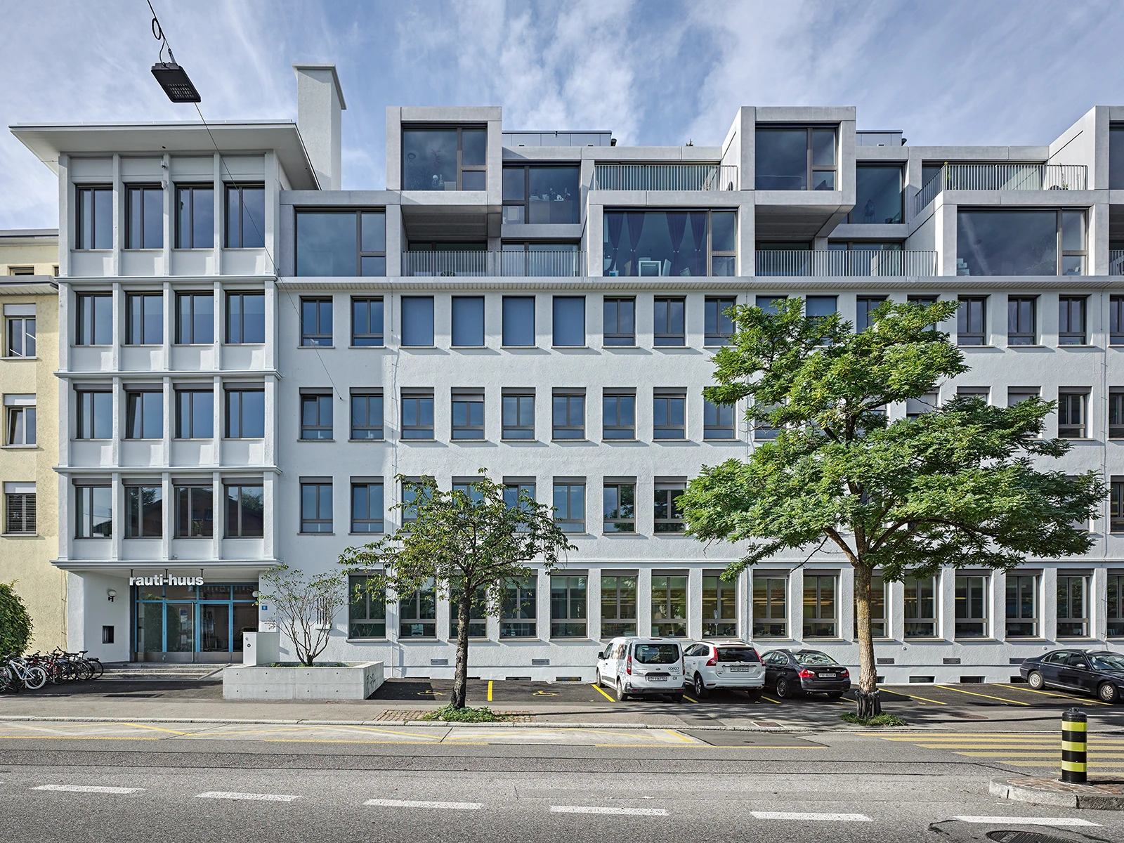 Together with the neighbouring building at Albisriederstrasse 226, the commercial building designed by Rudolf Kuhn in 1947 forms an architectural ensemble whose consistent urban appearance represents a piece of Zurich’s industrial architecture. The subtle façade modulations, the rhythmic design of the stair towers and the large and bright entrance areas are typical of the late 1940s.
