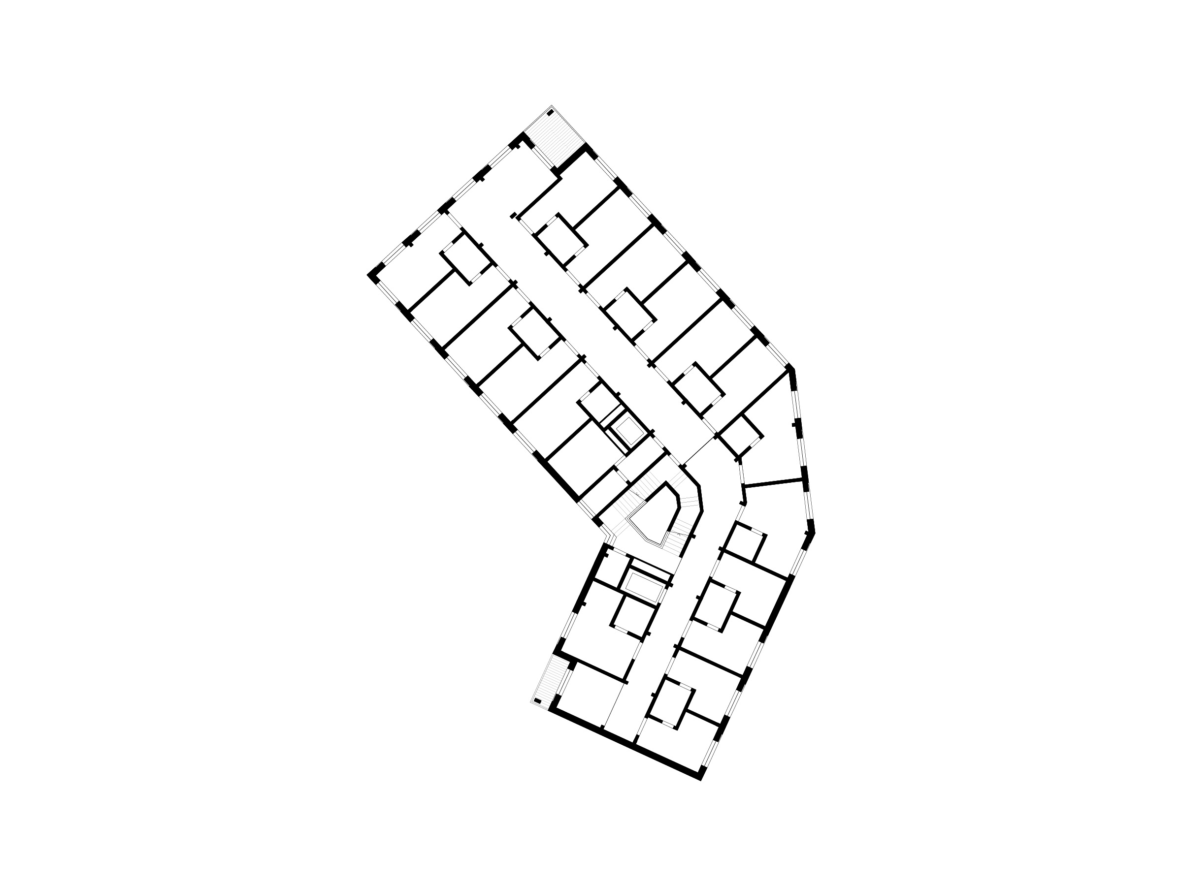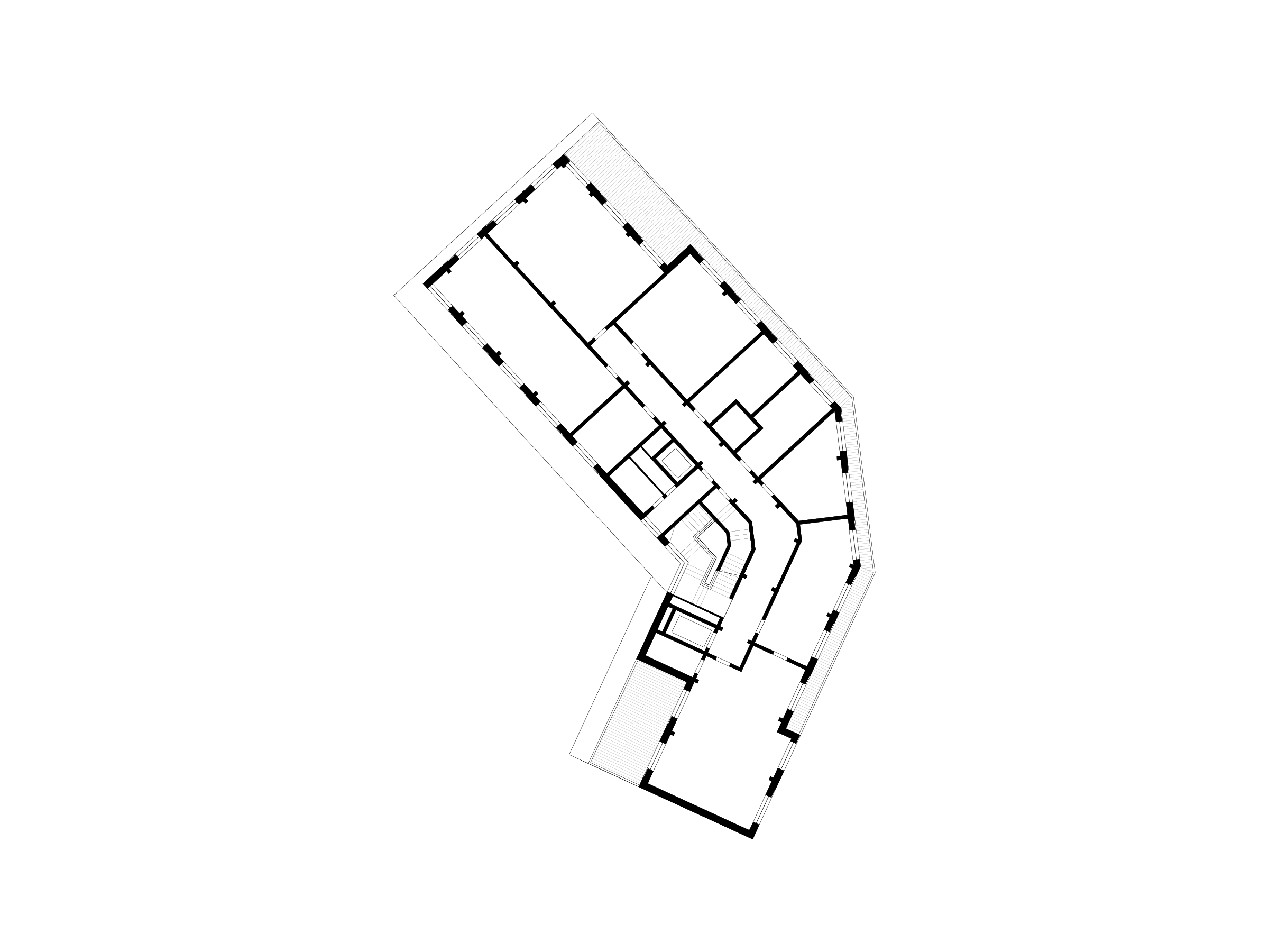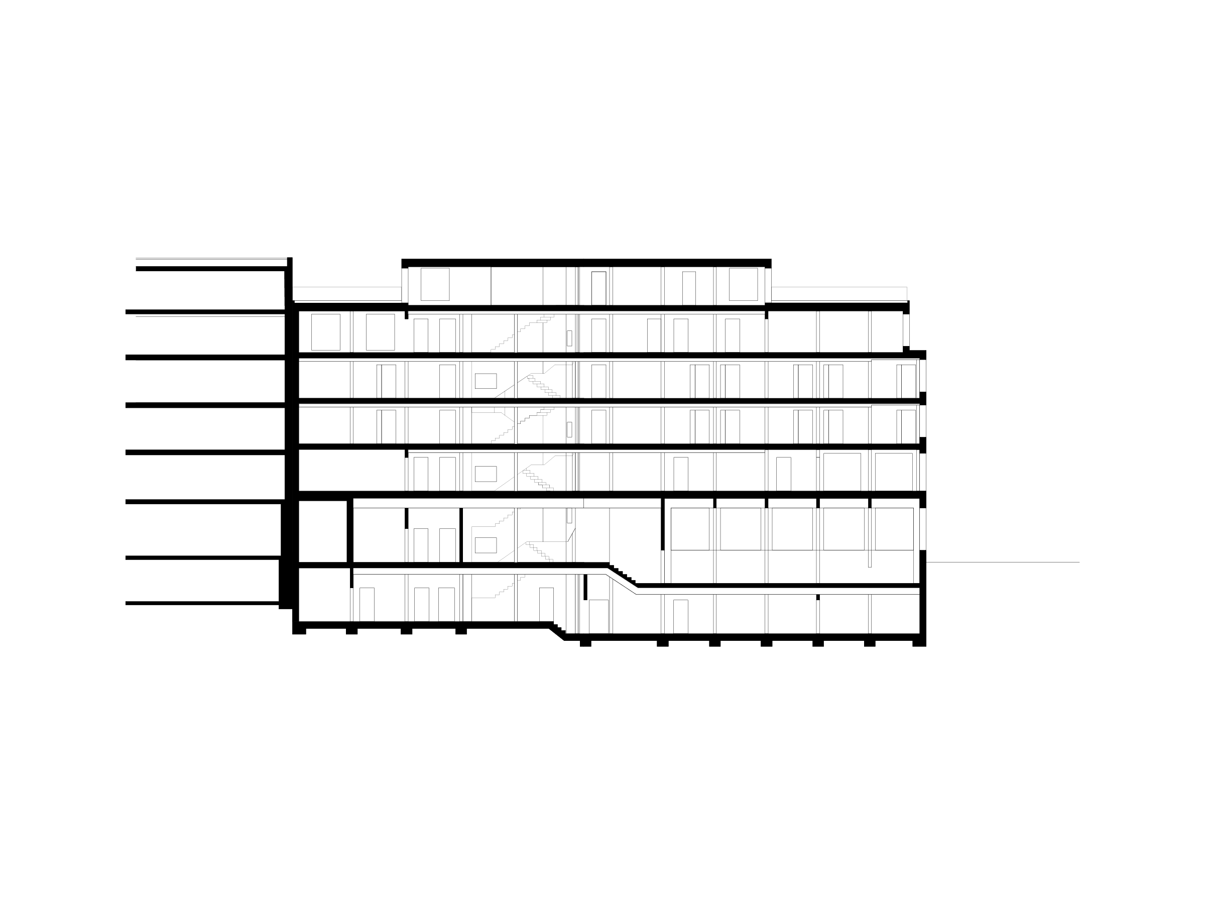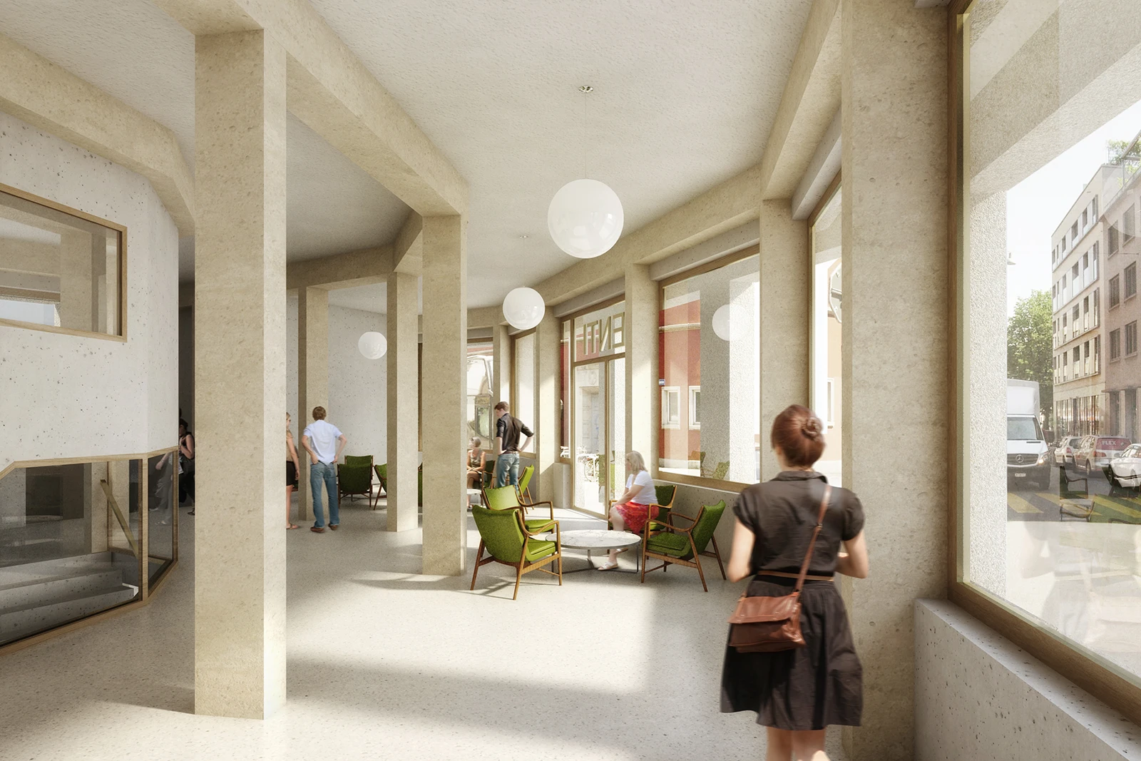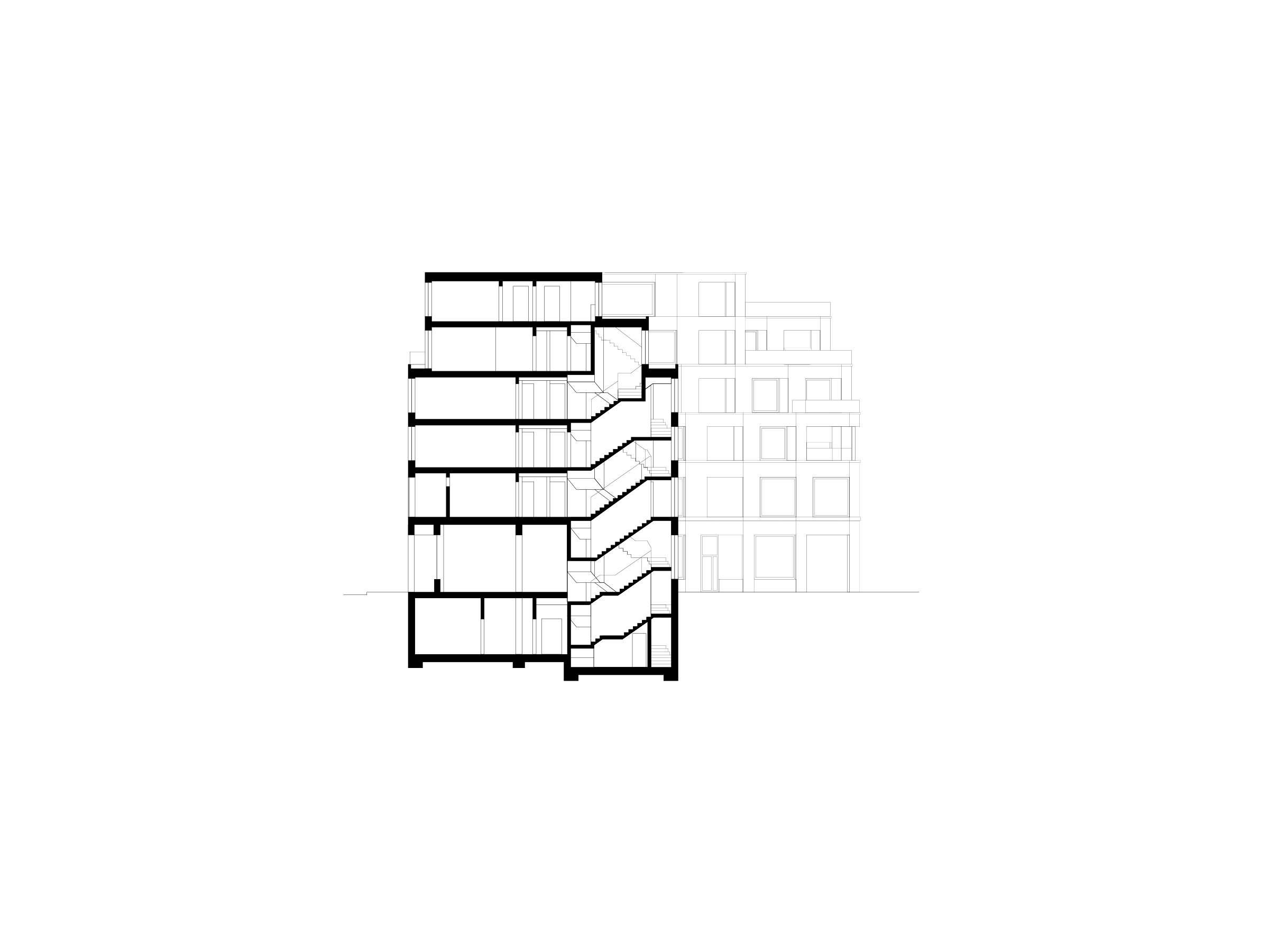 The dense urban area of Aussersihl is primarily defined by the closed block constructions of the 19th century. The proposed structure mimics the characteristics of surrounding buildings of the early 1900s, including a basement level, an accentuated mezzanine with large openings, a intermediate floors, and an attic. Nevertheless, these historical references have been modified into a more precise architectural language.
