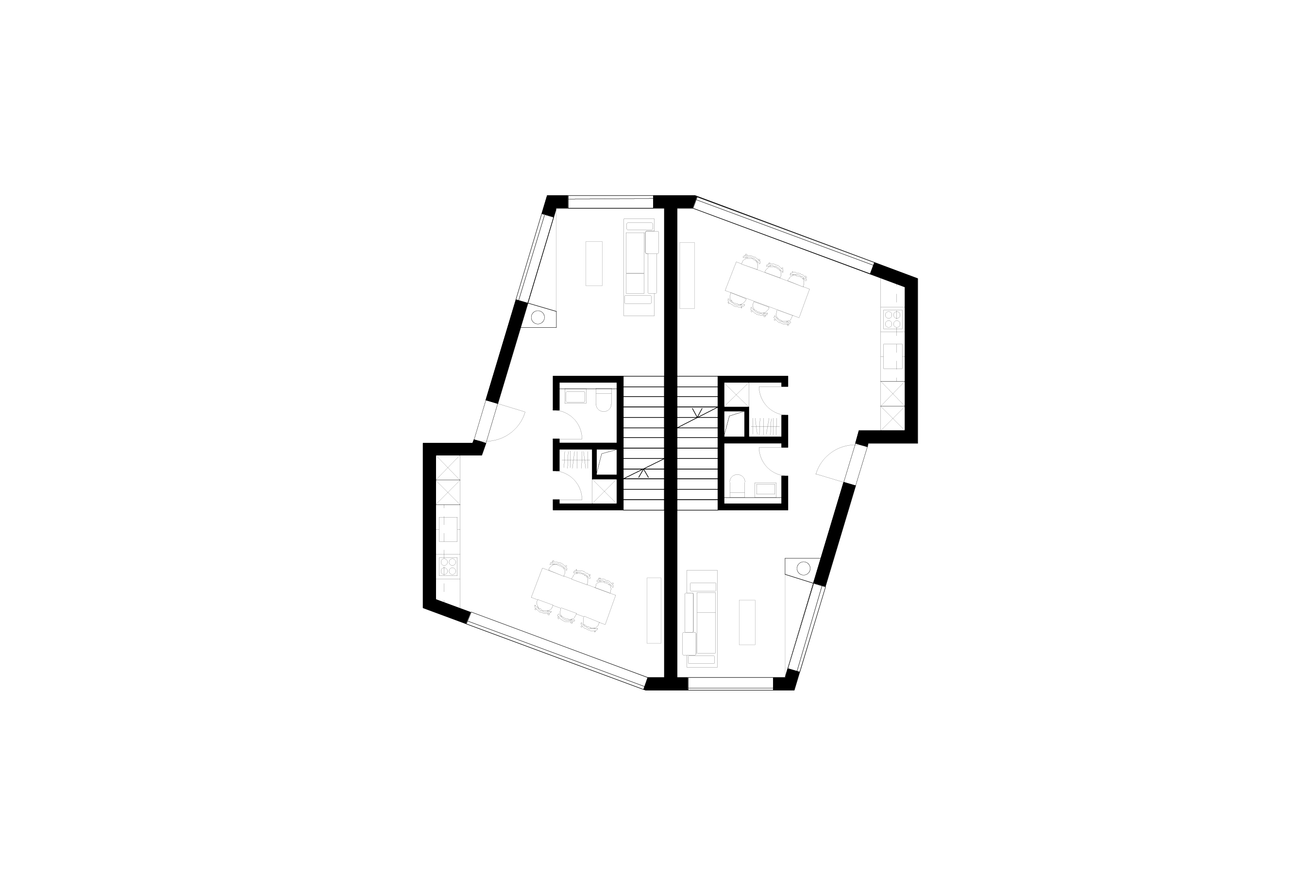 Between hills and a lake in Wilbrunnen, Unterägeri, stands an aging house dating from 1951. To meet today's standards, a study for a new building was developed - inspired by the region's rocks, between modernity and traditional morphology.